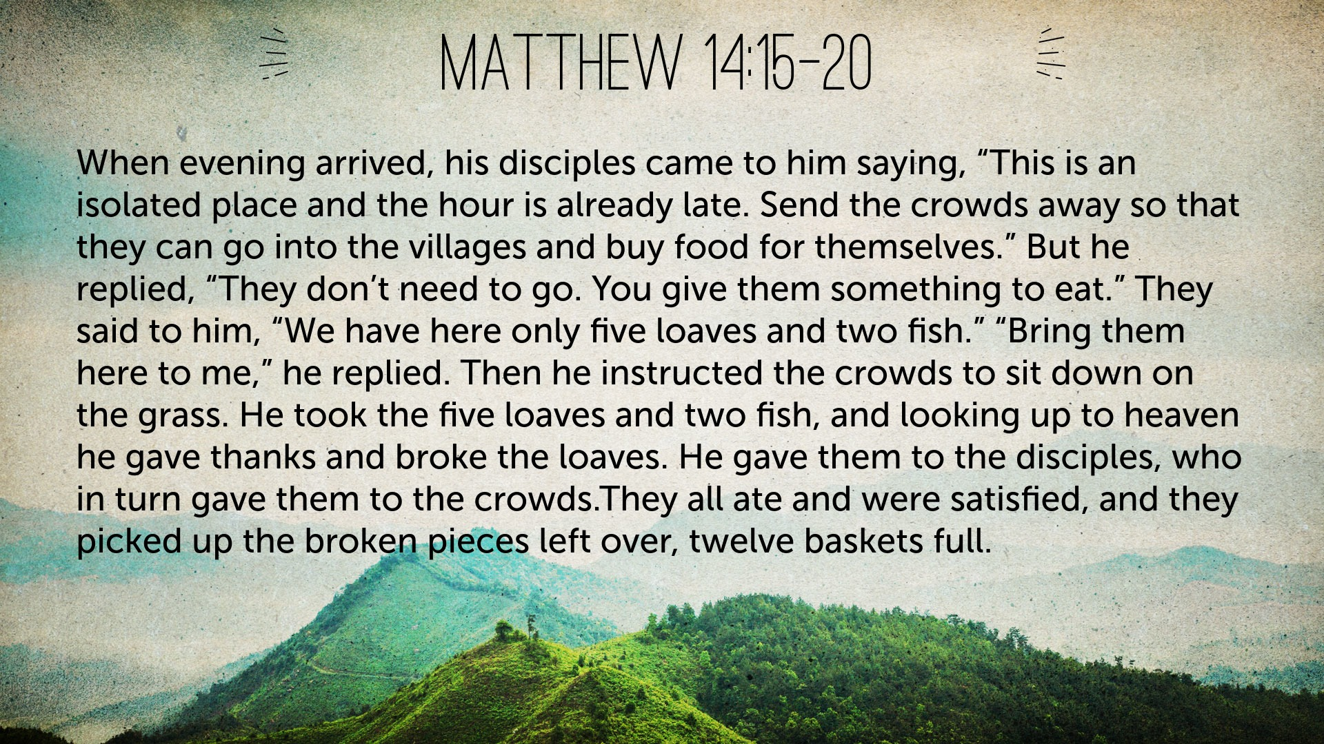 Father, open my eyes to your great, abundant provision for my soul and life in Jesus. Give me a ravenous appetite for your provision – hunger for your Word and the truth of Christ that gobbles up everything thing I can. And let me take what you have broken, and not let a crumb of it be left behind, but carry it to others who need the Bread of Life that only you can, and have so graciously supplied.