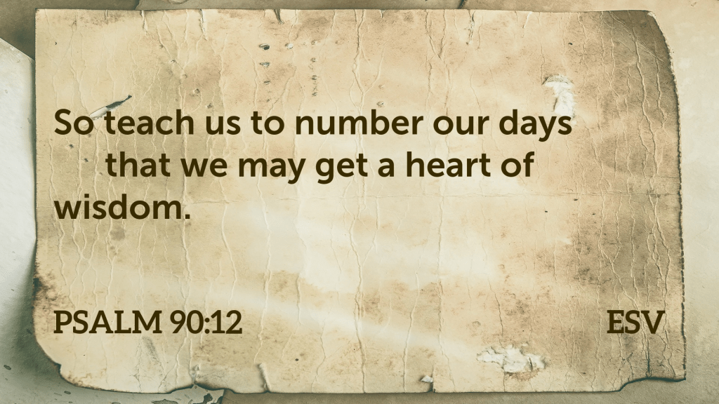 “Heavenly Father, I pray this along with Moses today. Let it be so. Teach ME to number my days. To take advantage of the time you have given. Not to waste it on the world and on frivolous things. Not to squander it on what is temporary, and least of all, sinful. May my days be spent in learning of you, joying in you, making your glory known to others, and manifesting your great love in the earth. Make my time productive in the advancement of your kingdom within my own heart, in the hearts of those who know you, and to extend to those who do not – that they too might come under your banner in salvation. Let me not lose one moment in bitterness. Not a single second musing upon wickedness. No time invested in self-pity, arrogance, self-will or hatred against any other. Let me not give up one of these precious hours to anything that would displease you. Let me invest each passing moment in reveling in your glory and goodness and grace. Teach me to number my days, that I may get a heart of true wisdom. Let me live clinging to the Cross of Christ, and proclaiming His saving work on Calvary to all my brothers and sisters in Christ, and to this lost and dying world any and every way open to me.”