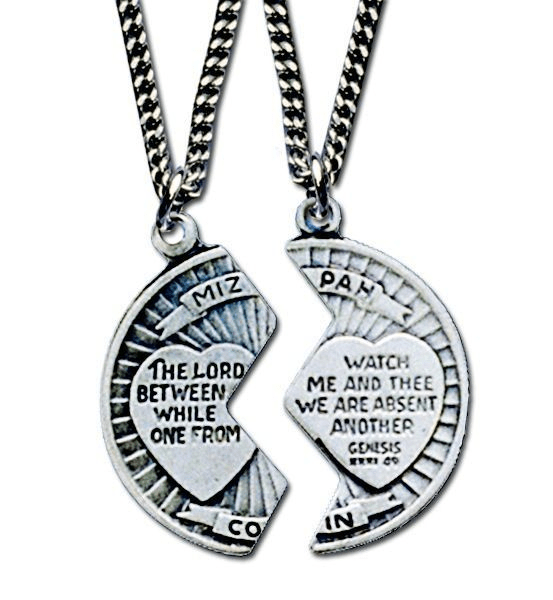 On the heart – when the two pieces were put together were inscribed these words: “May the Lord watch between you and me when we are out of each other’s sight” – along with the Scripture reference.